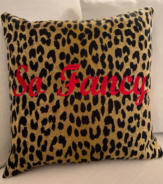 OTT phrase, reversible (Embroidered Leopard & Multi Pattern) throw pillows. Handmade, in...